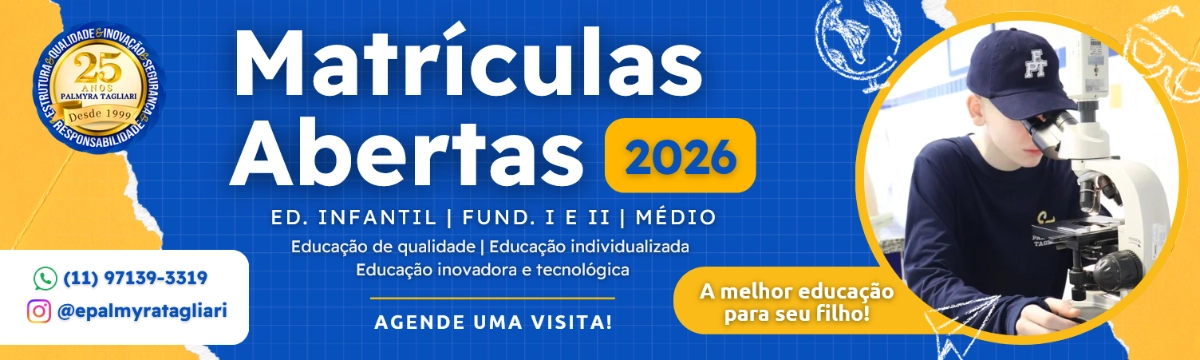 Educação Infantil Ensino Fundamental Ensino Médio Conheça os projetos da melhor escola de Guarulhos e venha fazer parte! Atividades Esportivas NataçãoHidroginásticaBalletJiu JitsuCapoeiraEscola de Futebol Itinerário Formativo Robótica & Maker Dinâmica Musical com um instrumento por aluno Projeto Bilingue Desde Educação Infantil até o 7º ano do Ensino Fundamental Venha conhecer o melhor da educação! Agende sua visita agora mesmo! Agendar Visita Próximos Eventos Por enquanto não há eventos programados. Blog EPT Dúvidas Frequentes Revista Digital